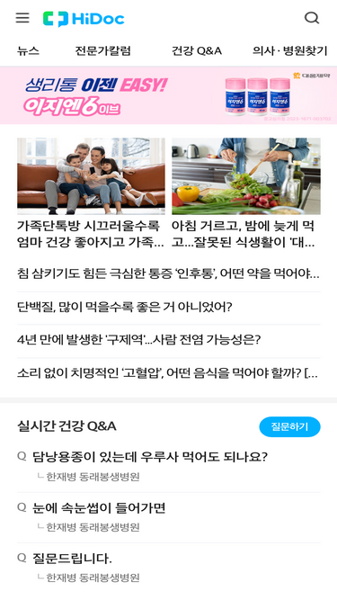 98%건강Q&A,의사·병원찾기,착한견적·핫딜,뉴스,건강지수,미세먼지지수 건강이 궁금할 땐, 건강포털 하이닥!