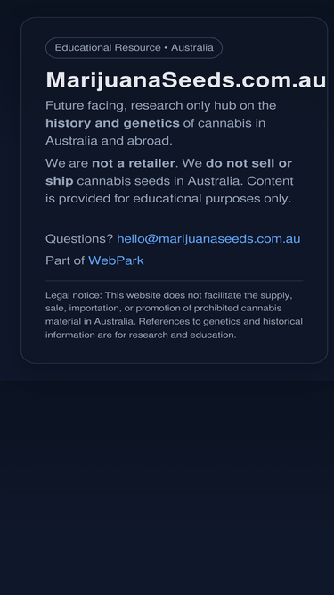 100%An Australian educational resource about cannabis history and genetics. No sales or shipping in Australia.