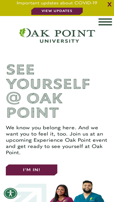 75%welcome to oak point university! for more than 100 years, we have been educating and shaping the healthcare professionals of tomorrow today.
