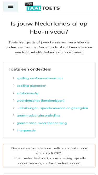 94%toets hier gratis of jouw kennis van verschillende onderdelen van het nederlands voldoende is voor een taaltoets nederlands op hbo-niveau.