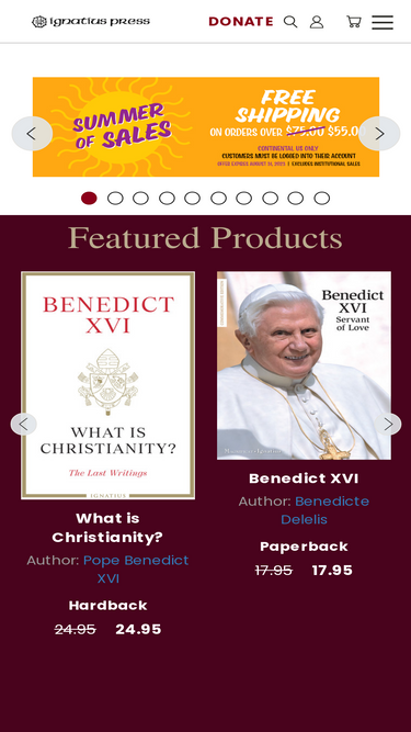 100%Ignatius Press, founded by Fr Joseph Fessio, SJ is a Catholic publishing company specializing in the translations of great theologians like Cardinal Josef Ratzinger, Pope Benedict XVI, Hans Urs von Balthasar, Henri de Lubac, Adrienne von Speyr and modern philosophers like Peter Kreeft along with great fictional writers like Michael O'Brien.