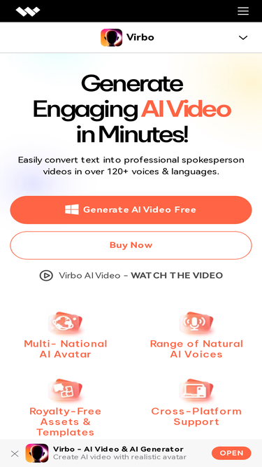 100%wondershare virbo is an ai avatar video generator available on windows, ios, and android devices. what's more? the virbo online web version is also waiting for you. easily convert text into professional spokesperson videos in over 460+ voices & languages in minutes.