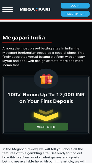 Megapari bet is the largest online sports betting company in India. Join today and get your exclusive welcome offer. Get the best odds on all sports, every time 2025.