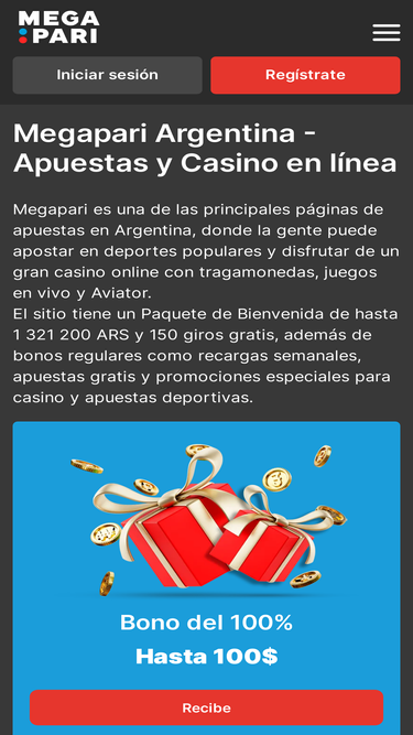 100%Descarga la app de apuestas y casino Megapari Argentina para iOS o Apk para Android en tu móvil. ¡Regístrate y obtén un Bono del 100%!