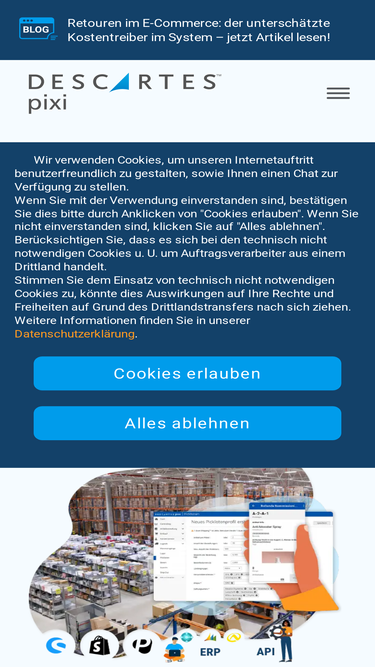 82%Impressum Angaben gemäß § 5 TMG: Descartes Systems (Germany) GmbH Martin-Luther-Ring 13 D-04109 Leipzig Telefon: +49 (0)89 961 60 61 60 E-Mail: info@descartes.com Webseite: https://www.pixi.eu Hinweis: Unsere Services auf pixi.eu richten sich ausschließlich an euch als Geschäftskund:innen – also an Unternehmen, Selbstständige und Organisationen (§ 14 BGB). Wenn ihr Verbraucher:innen