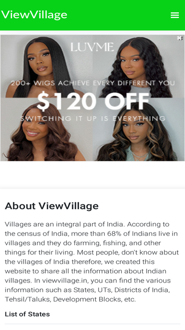 73%in viewvillage.in, you will find information about india such as district list, tehsil list, development block list and village list and much more.