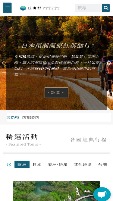 82%丘山行/丘山旅行社專門舉辦海外健行登山及優質旅遊活動,希望能為愛好大自然及徒步健行的朋友們,打開另一扇感動的窗。丘山行的足跡遍及全世界七大洲,包括日本、尼泊爾、歐洲、紐澳、美洲、南極等地。除團體旅遊外,我們也提供企業包團、客製化行程等服務,是值得您信賴的健行旅遊專家!