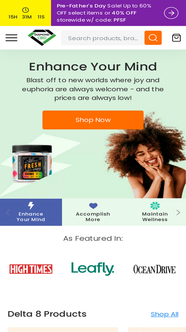 84%Shop our on sale selection, featuring popular cannabinoids like Delta-8 and CBD. Enjoy reliable products, transparent pricing, and lab-tested quality from Diamond CBD.