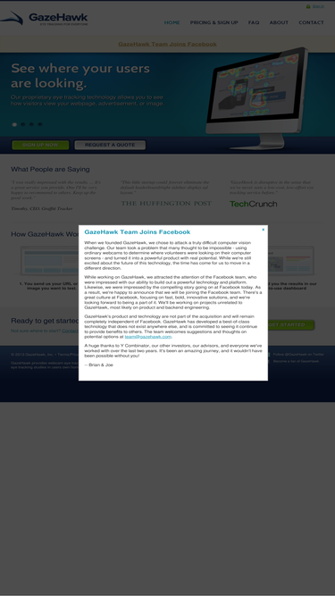55%gazehawk provides affordable quality eye tracking services. use it to see what your users are looking at on your site. improve conversions, increase usability, and measure ad spot quality.