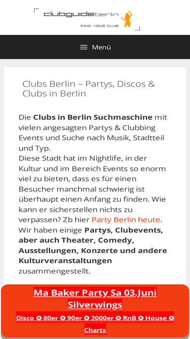 98%Berlin Nightlife | Alle Clubs ❤ Alle Discos | Die Clubsuchmaschine für Berlin mit Clubsuche nach Musik, Stadtteil und Clubtyp.