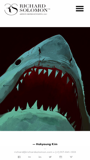 100%RICHARD SOLOMON ARTISTS REPRESENTATIVE, LLC121 Madison Ave., Suite 5FNew York, NY 10016 Richard Solomon – Founder, Artists Agent Alex Huang – Project ManagerCommission/Contact: richard@richardsolomon.com (Usually responds faster by email than by phone) Elaine Wang – Accounting Manageraccounts@richardsolomon.comT: 929.245.5267 ARTISTS SUBMISSIONIf you are an artist interested in joining the group, please send your work to … Continued