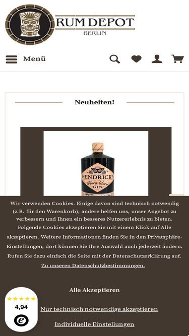 75%Neben etwa 1.000 verschiedenen Rum und über 200 Gin bietet das Rum Depot auch eine große Auswahl an weiteren Spirituosen, wie. z. B. Whisk(e)y, Vermouth, Brände, Tequila, Mezcal, Bitters, Sirupe uvm.. Das gesamte Sortiment umfasst rund 2.000 Spirituosen.