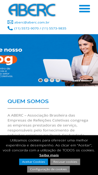 82%QUEM SOMOS A ABERC - Associação Brasileira das Empresas de Refeições Coletivas congrega as empresas prestadoras de serviço, responsáveis pelo fornecimento de refeições coletivas no Brasil. Foi fundada em 11/02/84 e desde o início tem sua sede à Rua Estela, 515 Bloco B cj.62 - Paraíso -São Paulo, hoje de propriedade da ABERC. Saiba