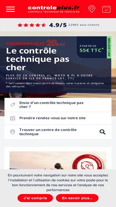97%CGV et Conditions d'Utilisation du site controleplus.fr : Enseigne N°1 du Contrôle Technique en Ile de France (Véhicules légers et Poids lourds.