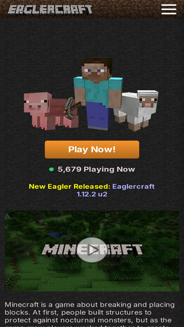75%Learn how to play Eaglercraft with our getting started guide. Find official handbooks, video tutorials on controls and crafting, and tips for both Creative and Survival modes.