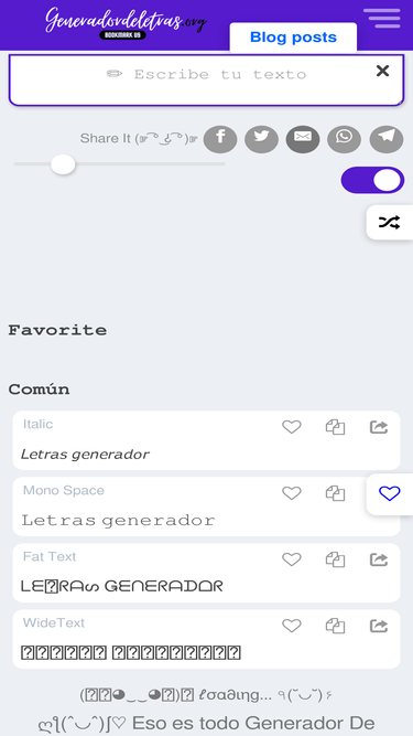83%Cool hərfləri və fancy mətn simvollarını dərhal kopyala-yapışdır et. Unicode işarələrindən istifadə edərək stilniq adlar, estetik mətn, smayllar və bəzəkli sözlər yaz.