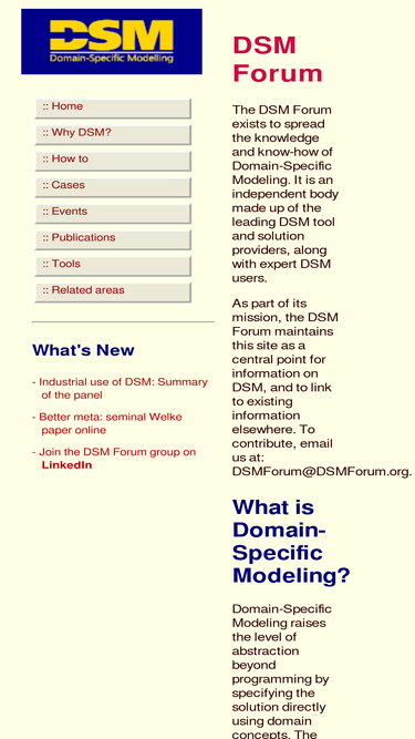 92%the dsm forum spreads knowledge and know-how of domain-specific modeling with full code generation. it is an independent body made up of the leading dsm tool and solution providers, and expert users.