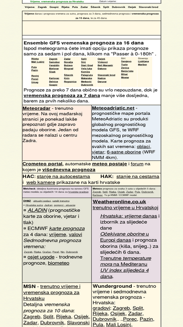 81%vremenska prognoza za 7, 10, 15 dana i trenutno vrijeme u hrvatskoj. vrijeme - hrvatska, gradovi: zadar, zagreb, split, rijeka, osijek. vrijeme danas, prognoza vremena za sutra, slijedeća tri dana, sedmodnevna vremenska prognoza.