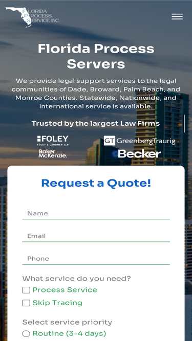 100%Ready to hire a Florida Process Server? Request a quote today with our easy request form!