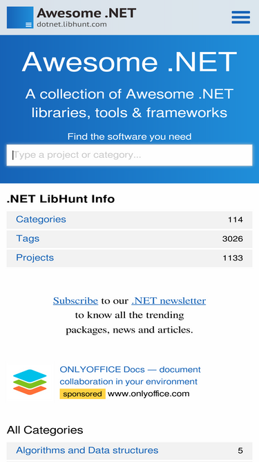 79%Your go-to .NET Toolbox. A collection of Awesome .NET libraries, tools & frameworks. 1201 projects organized into 114 categories.
