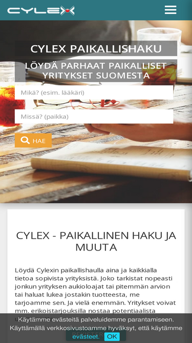 75%cylex-toimialaluettelo suomi on online-toimialaluettelo community-portaalin muodossa. sieltä voit löytää yritysten osoitteita, kuvauksia ja karttoja. täällä on myös käyttäjien arviointeja; myös sinä voit arvioida yritysten tuotteita ja palveluita.
