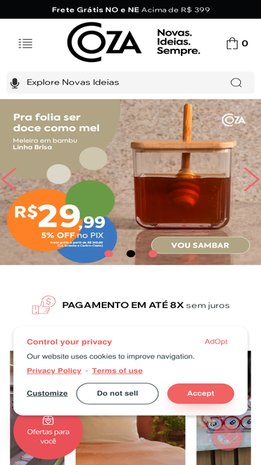 88%Aproveite o melhor da Coza com Descontos Imperd�veis em Potes Herm�ticos, Caixas Organizadoras, Lixeiras e Sobre a Pia. Garanta as melhores ofertas para seu lar com 5% de desconto no Pix e Frete Gr�tis para Sul e Sudeste*!