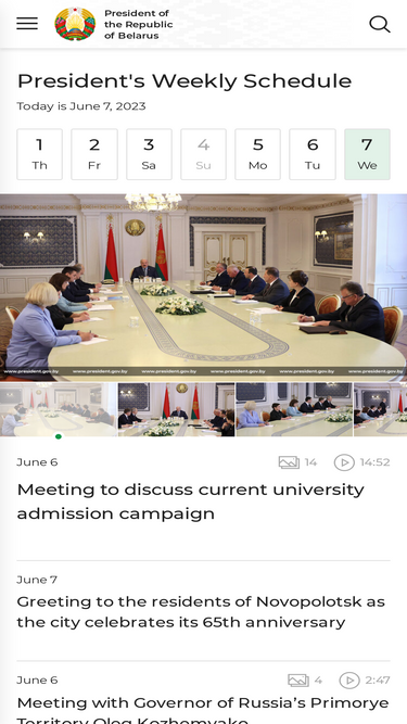 100%the official website of the president of the republic of belarus contains up-to-date information on trips, meetings, work schedules of a. g. lukashenko, as well as official documents, decrees, news.