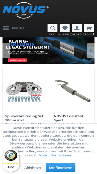 91%Novus NJT ALU Spurverbreiterung 40mm ....mit ABE ! Spurverbreiterung-Set - 40mm pro Achse (20mm je Seite) - mit Zentrierung - Lochkreis (LK) 5x108 / 5x110 - Nabenlochbohrung (NLB) 65,1mm passend für: ALFA ROMEO: Giuletta (940) Spider (939) 159 (939) Brera (939) CADILLAC: BLS (YSCF) FIAT: Croma (194) OPEL: Astra G (T98C) Astra H (A-H / A-H/NB) Astra H GTC / Cabrio / Twin Top (A-H/C) Astra H Kombi (A-H/SW) Omega B (V94 / V94/Kombi) Corsa D OPC (S-D) Vectra B (J96/Kombi) Vectra C / Vectra C-CC / Kombi (Vectra/SW / Z-C / Z-C/SW / Vectra/Lim / Z02/Z18XE) Zafira B (A-H/Monocab / A-H/Monocab-CNG / GMIG) Signum (VECTRA/CAR,VECTRA / Z-C/S) SAAB: 9-3 (YS3FXXXX / YS3F / YS3DXXXX) 9-5 (YS3EXXXX / YS3E) - alle NOVUS NJT-Extrem Spurplatten sind aus hochfestem Aluminium - zusätzlich eloxiert, damit der Rost keine Chance hat - mit ABE (gültig für die in der ABE eingetragenen Rad-/ Reifenkombinationen) Hinweise: - zur Montage werden längere Radschrauben benötigt (nicht im Lieferumfang enthalten!) - passende, längere Radschrauben finden sie in unserem Onlineshop Berechnung der benötigten Radschraubenlänge: - Schaftlänge der originalen Radschraube in mm messen - zur Länge der originalen Schaftlänge die Breite der Spurplatte addieren - Beispiel: original Schaftlänge 25mm + 5mm Spurplatte (je Seite) = 30mm Länge der neuen Radschraube - Prüfen ob die Radschrauben mit Kugel- oder Kegelbund benötigt werden