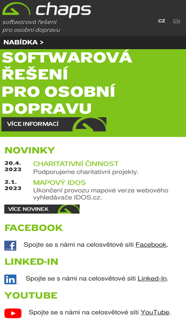 CHAPS spol. s r.o. je společnost zabývající se vývojem IT aplikací a systémů, jejich údržbou a provozem. Zaměřujeme se na komplexní softwarová řešení zejména pro oblast osobní dopravy a to jak na železnici, tak na silnici.