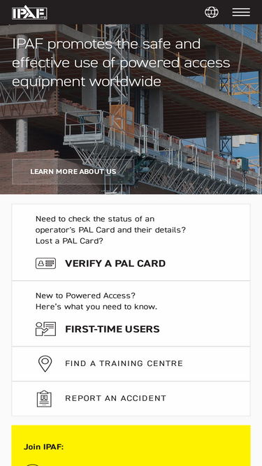 80%ipaf promotes the safe and effective use of powered access equipment worldwide. providing technical advice, influencing legislation, safety and training.