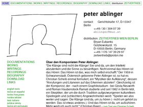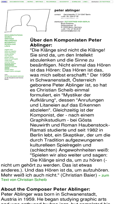 the official homepage of peter ablinger, composer; music for instruments, objects, electro-acoustics, rauschen, quadraturen, reference pieces, weiss/weisslich, prose pieces, reading pieces, installations, music without sound
