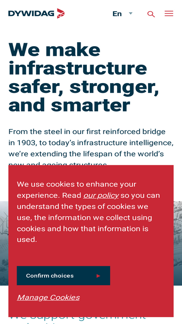 100%Discover DYWIDAG’s advanced engineering solutions for bridges, buildings, tunnels, and more. Strengthening infrastructure worldwide with innovation and expertise.