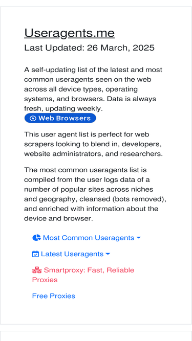 100%a self-updating list of the most current useragents across operating systems and browsers
