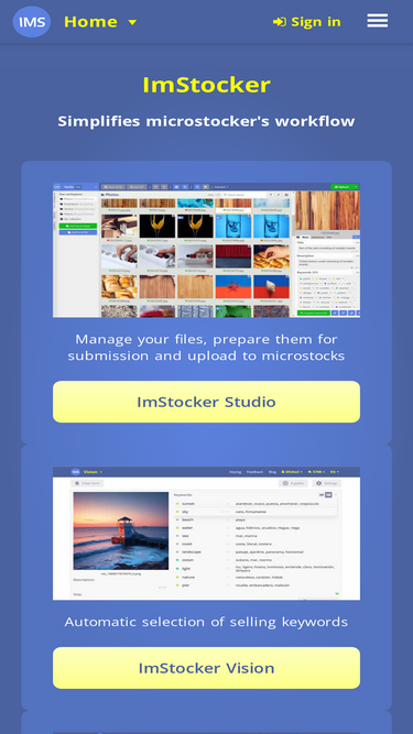our app makes it easy to work with stock content of any types, saves you a lot of time when uploading your files to microstock agencies and sending them for review.