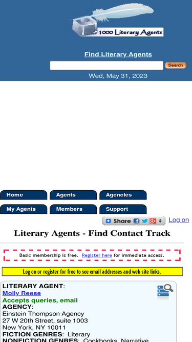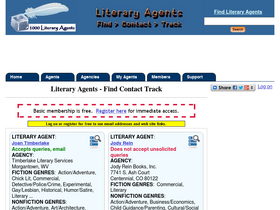 99%1000literaryagents.com provides guides to literary agents, lists of agencies, query writing facilities, record keeping to track submissions to agents, and other tools for writers.