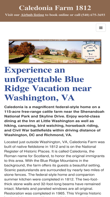 this top-rated bed & breakfast is a magnificent national register federal-style home adjacent to the shenandoah national park and skyline drive. experience an unforgettable blue ridge vacation at this washington va bed and breakfast. enjoy world-class dining nearby at the inn at little washington, as well as hiking, canoeing, birdwatching, horseback riding, civil war battlefields, and more! all within driving distance of washington dc and richmond va.