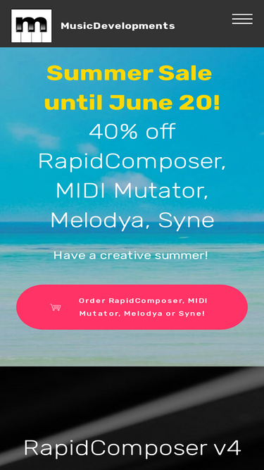 85%musicdevelopments rapidcomposer: music prototyping and composition software for creative musicians since 2010 | melodya: melody generator and motive editor | syne: modular additive synthesizer