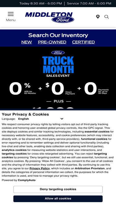 Family-owned, Middleton Ford has been serving the community for 73 years. We offer a wide variety of vehicles, fantastic service, OEM parts, and financing. Learn more now!