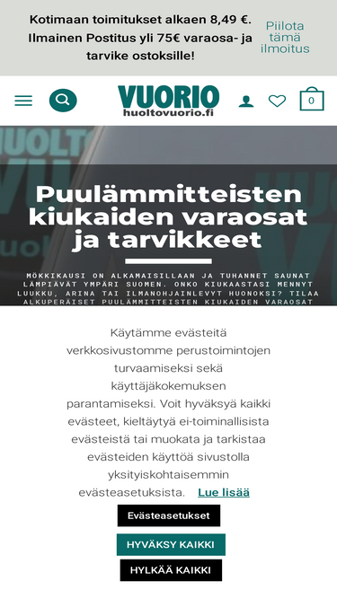80%Muut varaosat ja tarvikkeet imureista saunoihin. MErkeille kuten Electrolux imurin varaosat, Harvia, Miele ja monia muita. Pidä kodin laitteet kunnossa