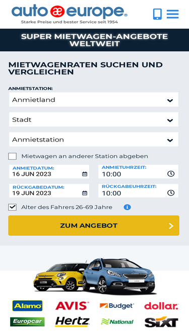 100%Einen günstigen Mietwagen findest Du bei Auto Europe
