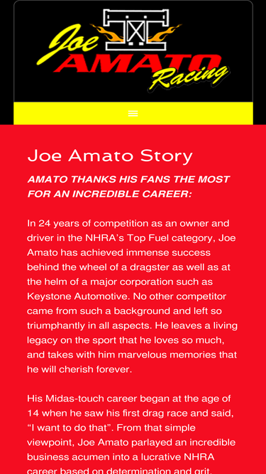 100%In 24 years of competition as an owner and driver in the NHRA's Top Fuel category, Joe Amato has achieved immense success behind the wheel of a dragster....