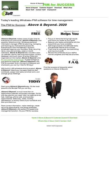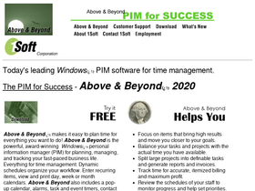 87%the most powerful pim available today helps you organize to-do lists, meetings, phone calls, and business appointments. above & beyond gives you note-, address-, and phone-books, along with multiple views of your schedule, and report printing. the perfect pc-based time management solution. it's the pim for success.