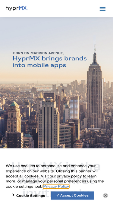 82%HyprMX is an ad network bringing brand ads to mobile apps. Based in New York, all of our mobile ads are directly sold to agencies and brands.