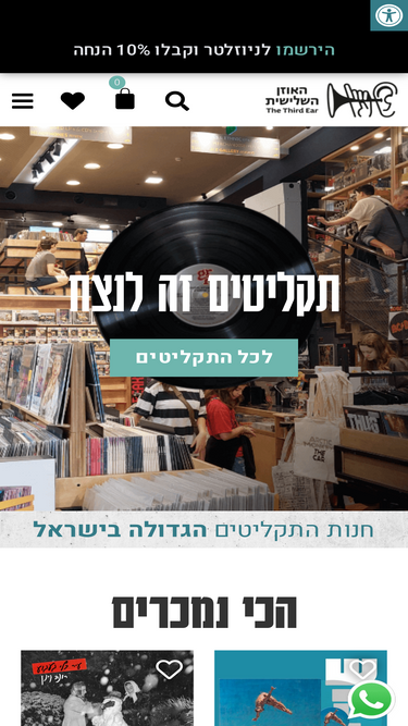 89%האוזן השלישיתחנויות מוזיקה וקולנוע. מכירה והפצה של תקליטים, דיסקים, ספרים, פופים, פטיפונים, מרצ', די.וי.די בלו ריי. חדשים ויד שנייהמשרדים ראשיים: רח' קינג