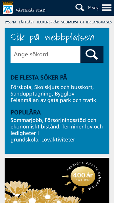 76%på vasteras.se kan du använda kommunens digitala tjänster. här hittar du också svar på de vanligaste frågorna kring kommunens uppdrag och service.
