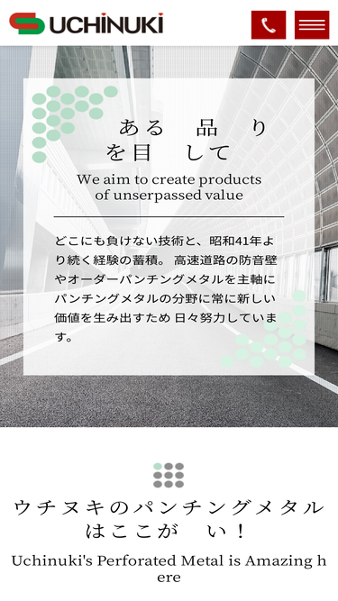 99%パンチングメタル専門の株式会社ウチヌキは様々な取り組みを行っております。他社ではできなかったパンチングや新しい素材の施工への挑戦を行い常にパンチング技術を磨いているからこそできる対応力が株式会社ウチヌキの強みです。