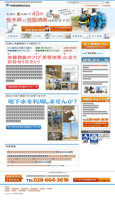芙蓉地質(ふようちしつ)は、栃木県を中心に長年「地盤調査」を一筋で行ってきた豊富な実績と、それに基づいた正確な成果を迅速に提供いたします。地下水や土壌汚染の調査もお任せください。