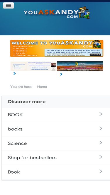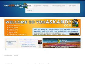 you ask andy is a great resource for students, teachers, parents and the general public. the questions are as varied as a child’s imagination. the contents of the questions and answers are in the areas life science, space science, geography, health, history, social studies and unique topics not usually found in reference books.
