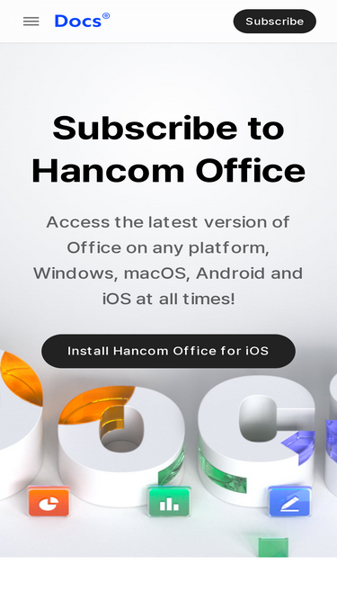 82%Use Hancom Docs to access to the latest version of Hancom Office on any platform. Whenever you need, you can create, edit, share documents with others.