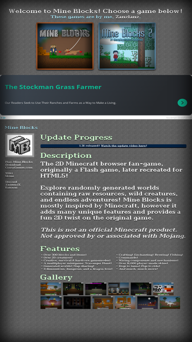92%Mine Blocks is a 2D Minecraft browser fan-game by Zanzlanz!